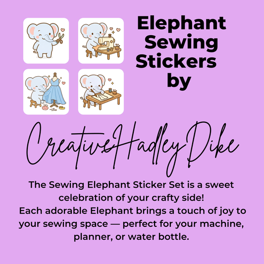 Elephant Sewing Sticker Set – for Sewists & Crafters – 1" or 2" Vinyl Stickers
