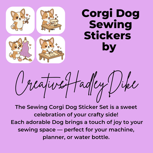 Corgi Dog Sewing Sticker Set – for Sewists & Crafters – 1" or 2" Vinyl Stickers