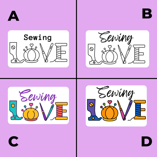 Sewing Love Sticker – Black & White or Color – Glossy Vinyl sticker