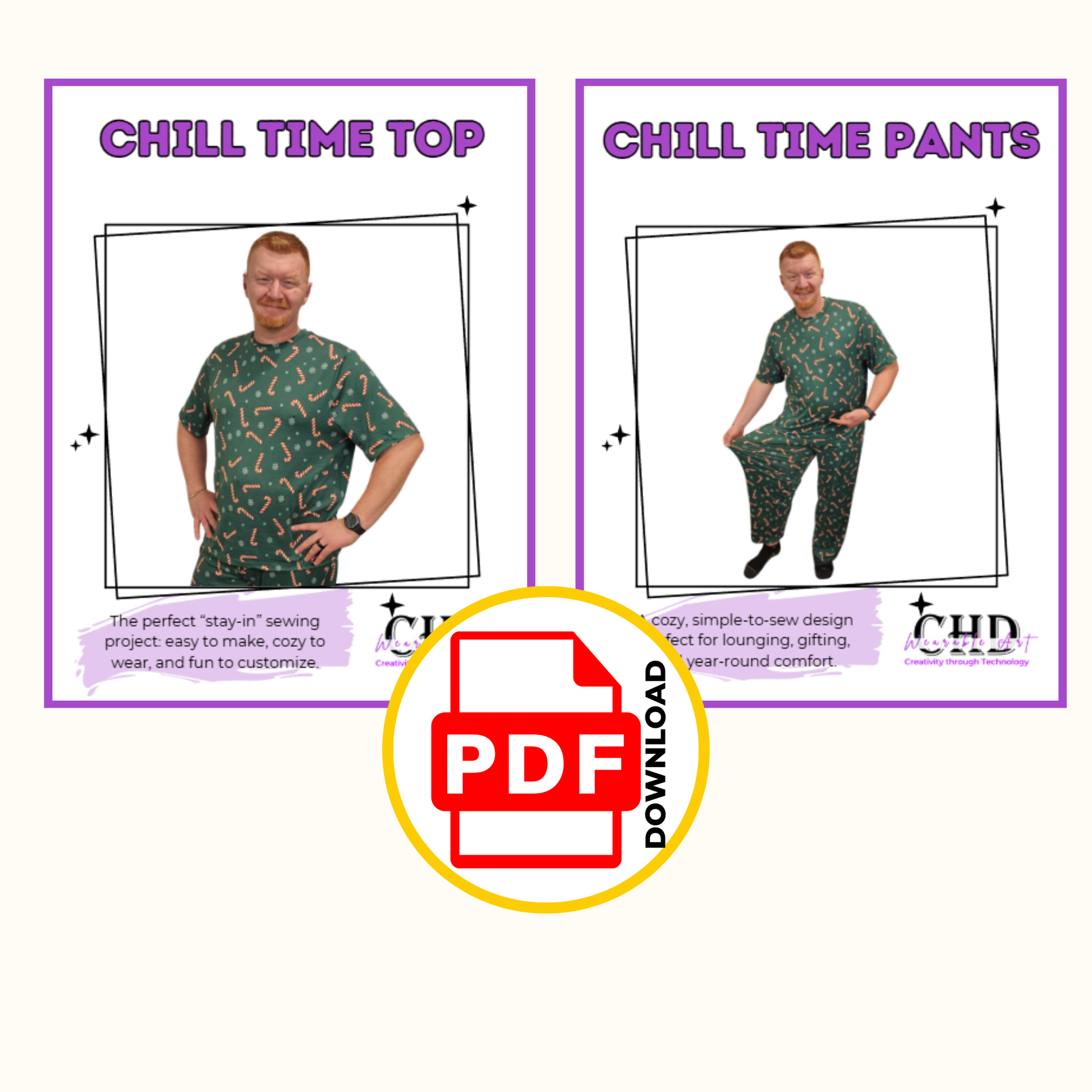 Sew your new favorite cozy outfit with the Chill Time PJ Set, a confident-beginner-friendly sewing pattern that includes both the Chill Time Lounge Top and Chill Time Lounge Pants. Designed for comfort, quick sewing, and everyday wear, this digital pattern helps you create a soft, relaxed-fit pajama set perfect for lounging, sleeping, gifting, and slow weekend mornings.