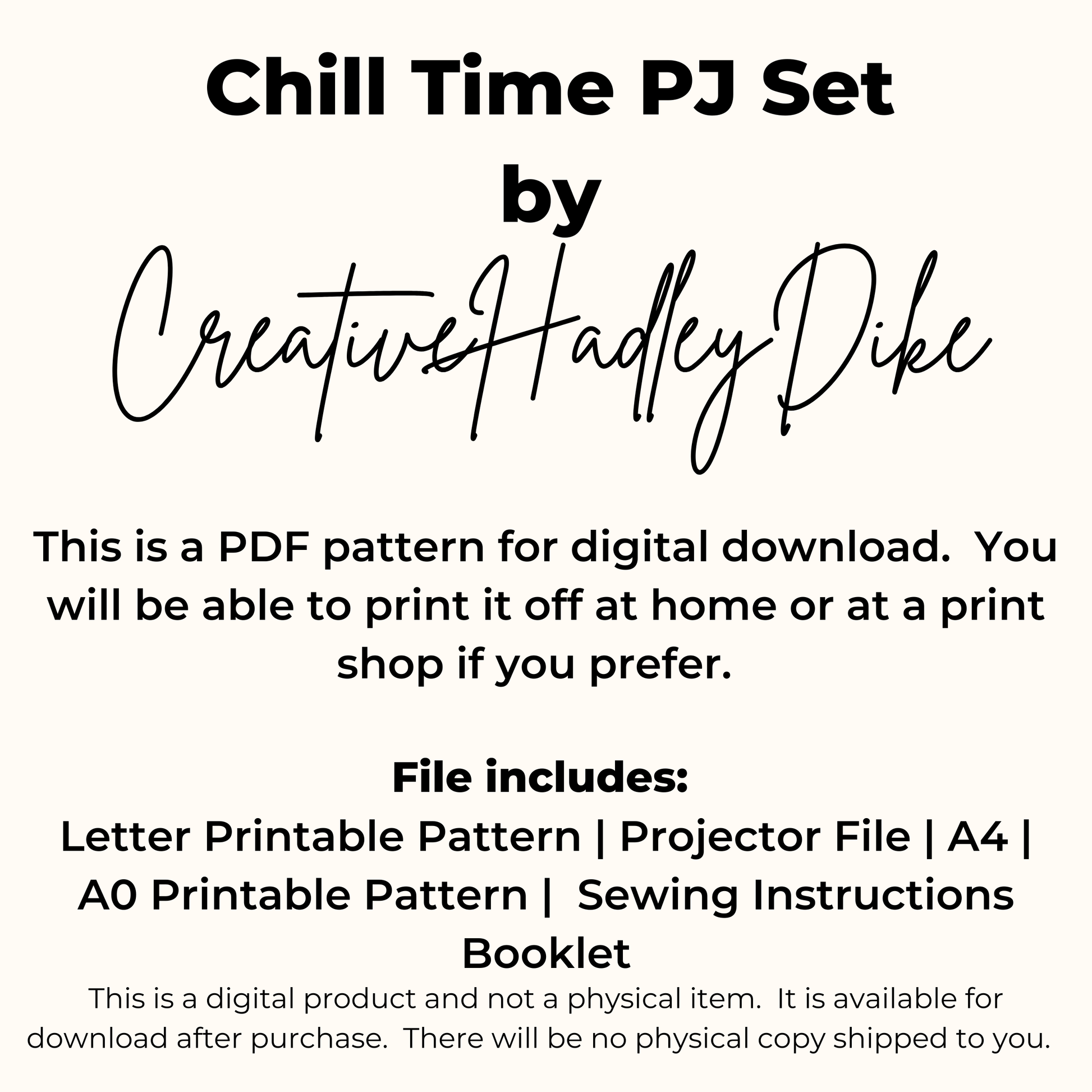 Chill Time PJ Set Sewing Pattern – Easy Loungewear Top and Pants PDF 20 Sizes