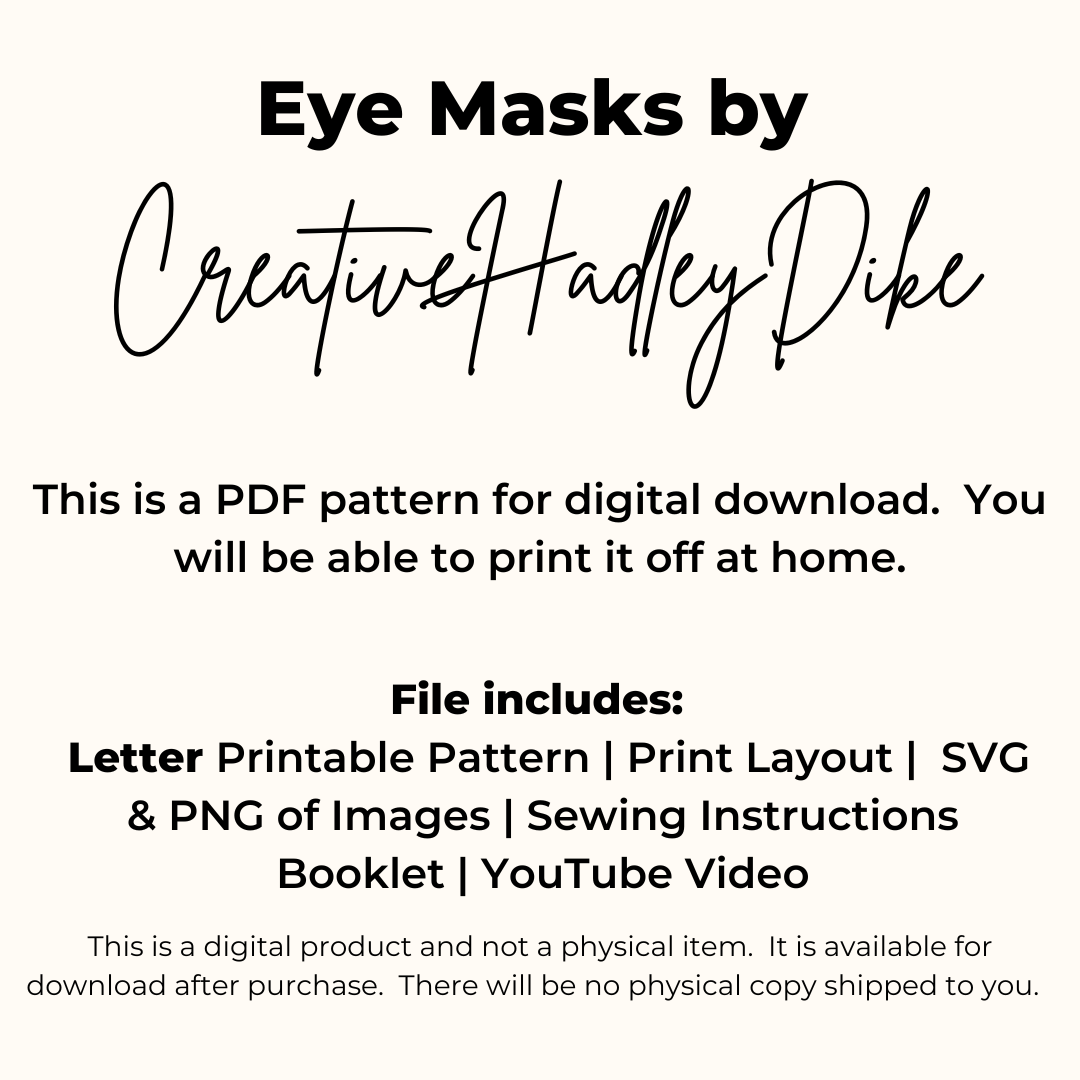 Get ready to create a dreamy eye mask that combines functionality and personal flair. Download the pattern instantly and follow along with our helpful video tutorial to bring your project to life!