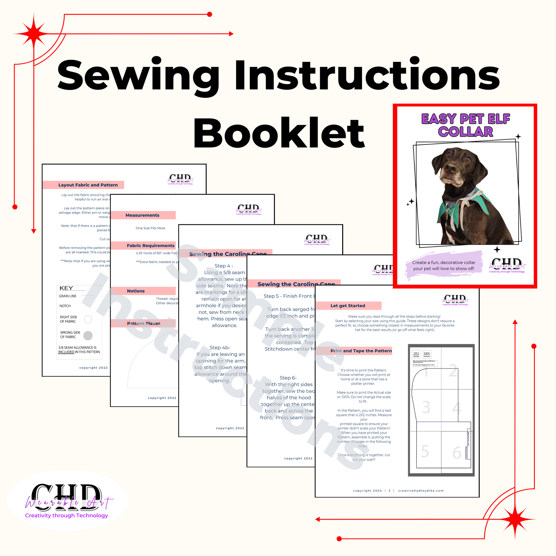 Easy Elf Collar Sewing Pattern, Easy Beginner PDF and Projector Files with 8 Sizes