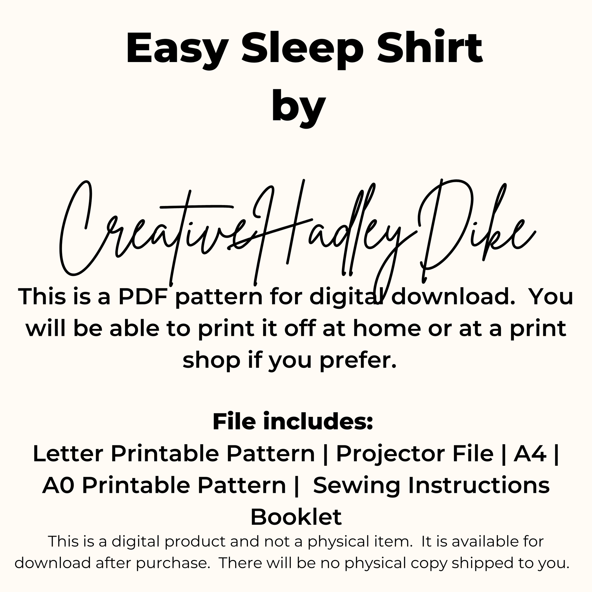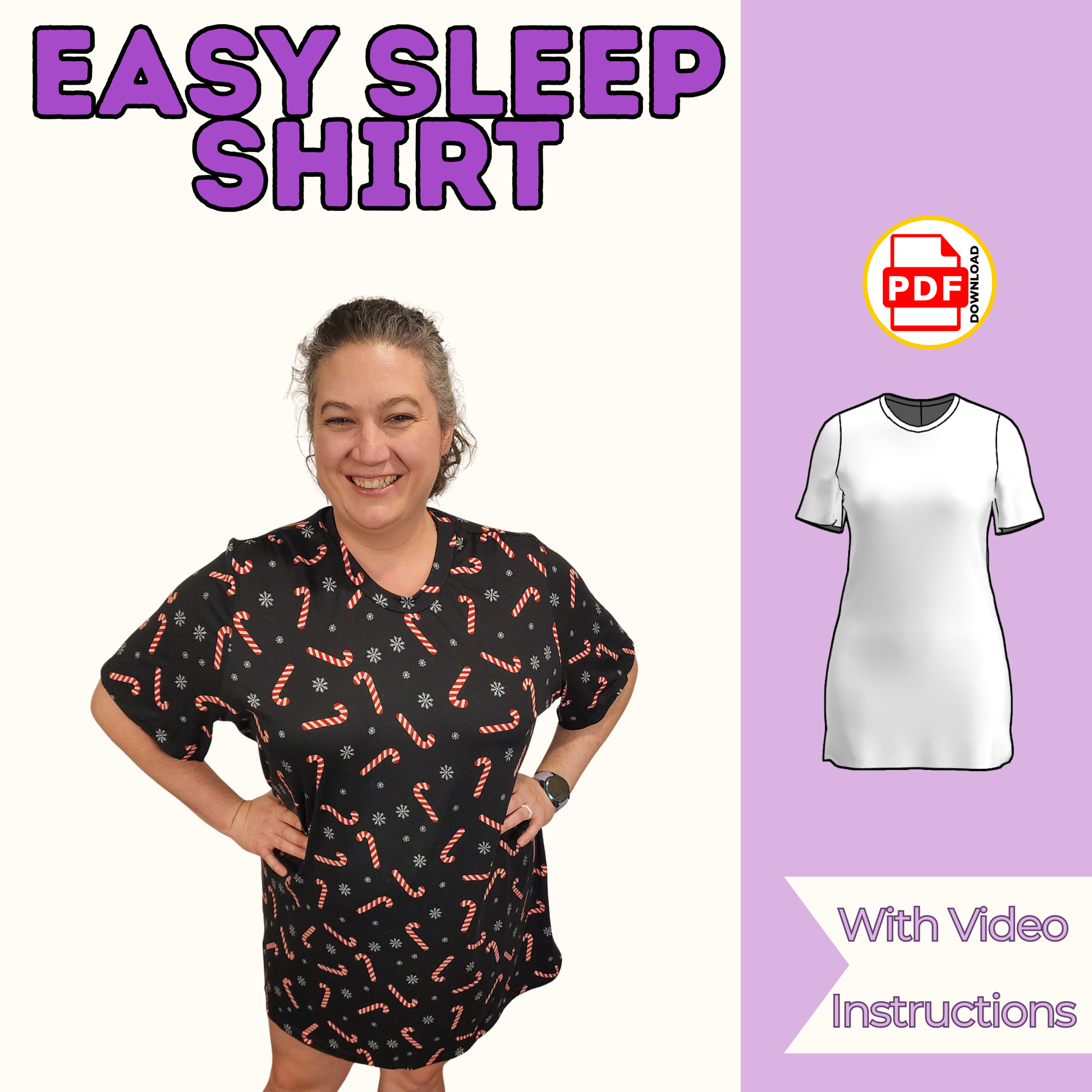 Easy Sleep Shirt Sewing Pattern – Beginner Knit Pajama Top PDF 17 Sizes