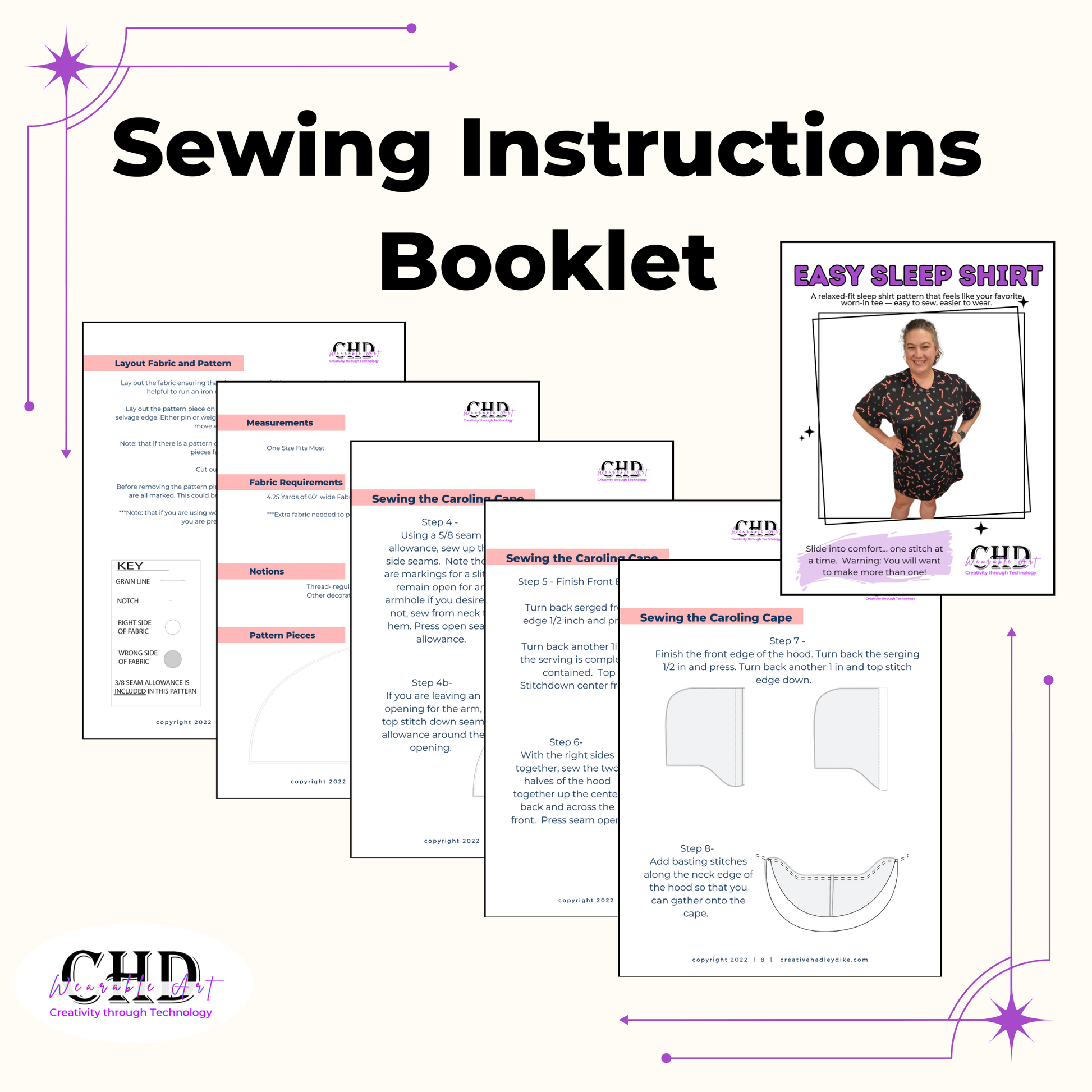 Sew your new favorite pajamas with the Easy Sleep Shirt, a cozy, relaxed-fit nightshirt designed specifically for stretch knit fabrics. This beginner-friendly pattern is quick to cut, simple to sew, and perfect for anyone who wants a comfortable sleep shirt or lounge top that looks handmade—but feels store-bought.