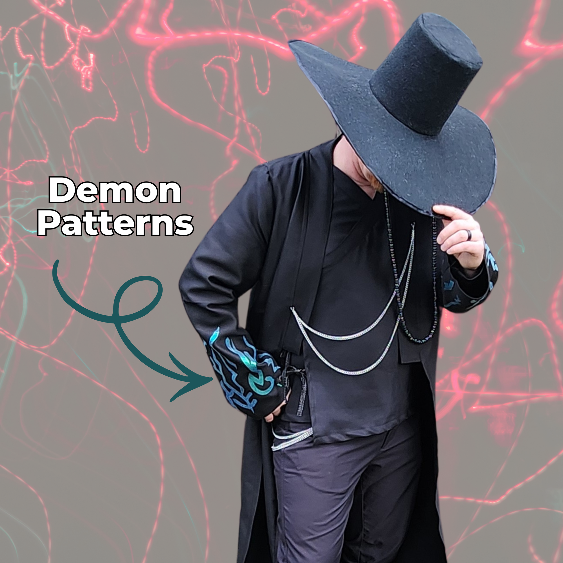 This digital pattern pack includes both continuous flame borders and individual lightning motifs, giving you full freedom to scale, position, and combine them however you like. Use them to upcycle your own demon cloak top or design an entirely new piece that sparks attention.