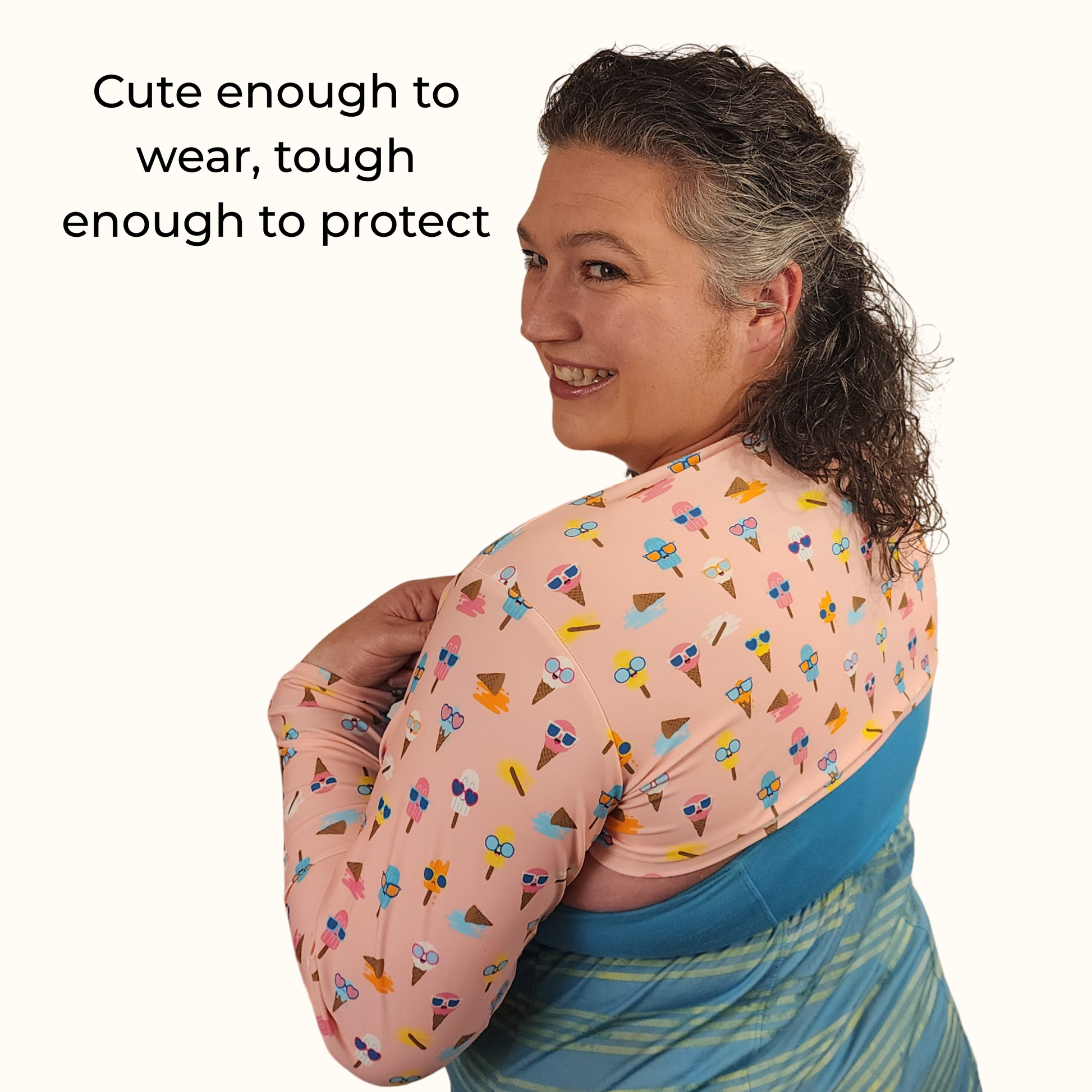 Perfect for cyclists, runners, dancers, and anyone who loves stylish, functional activewear, this shrug is designed to move with you. Whether you’re layering for warmth or sun coverage, the sleek fit and optional wrist bindings make it a versatile wardrobe addition.
