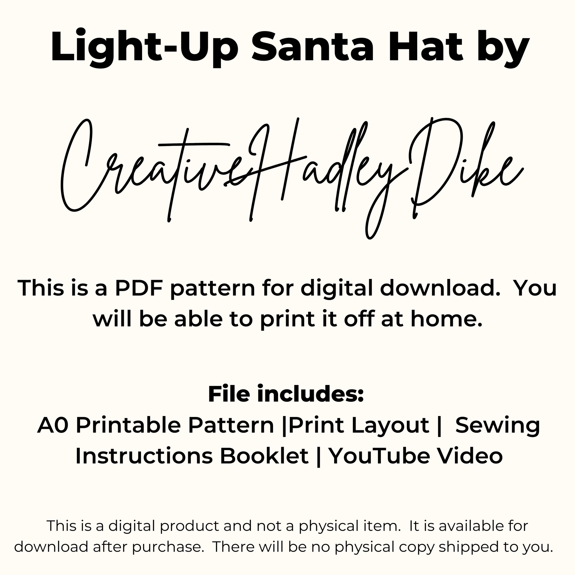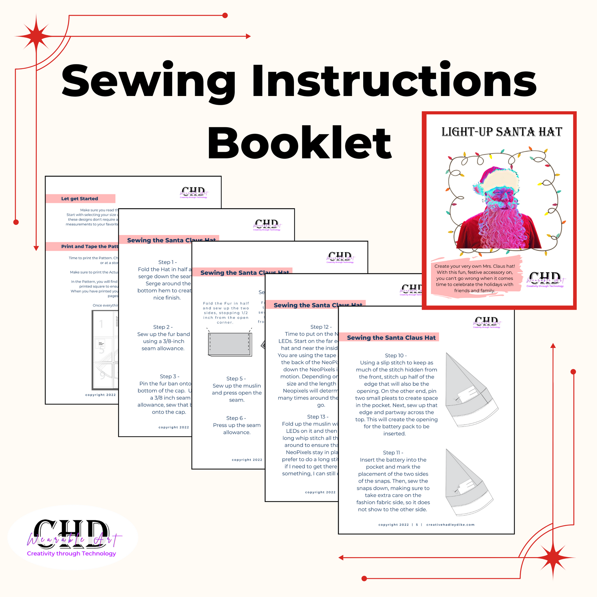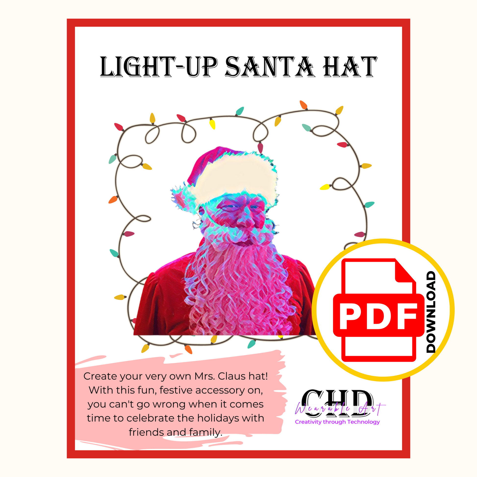Light-Up Santa Hat Sewing Pattern | Santa Hat PDF Pattern | Glowing Santa Hat PDF Pattern | No Soldering Light-Up Santa Hat Sewing Pattern