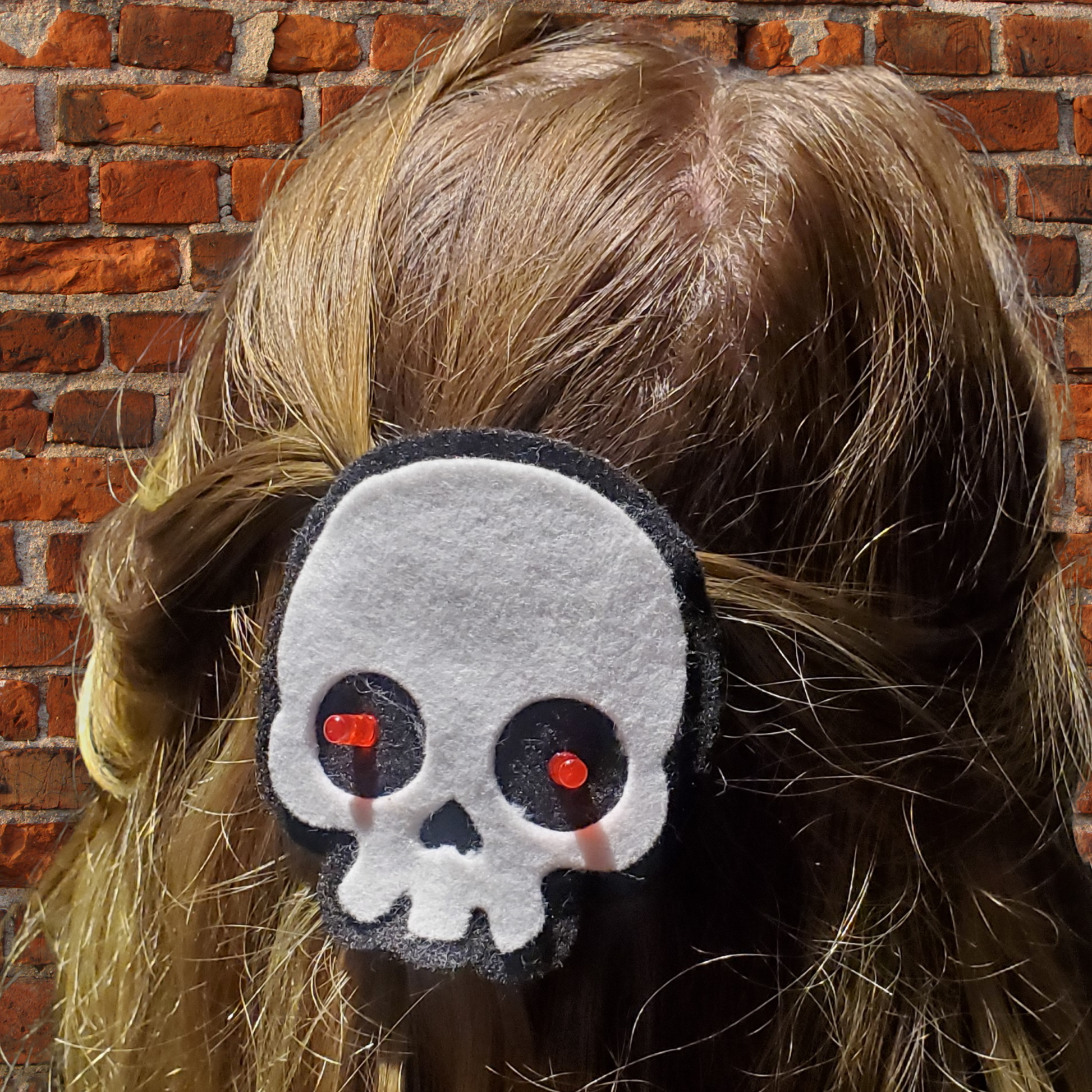 Light-Up Skull Barrette Sewing Pattern – Beginner Friendly DIY Craft | DIY Barrette | Halloween Barrette | Skull Accessory | Skull Barrette