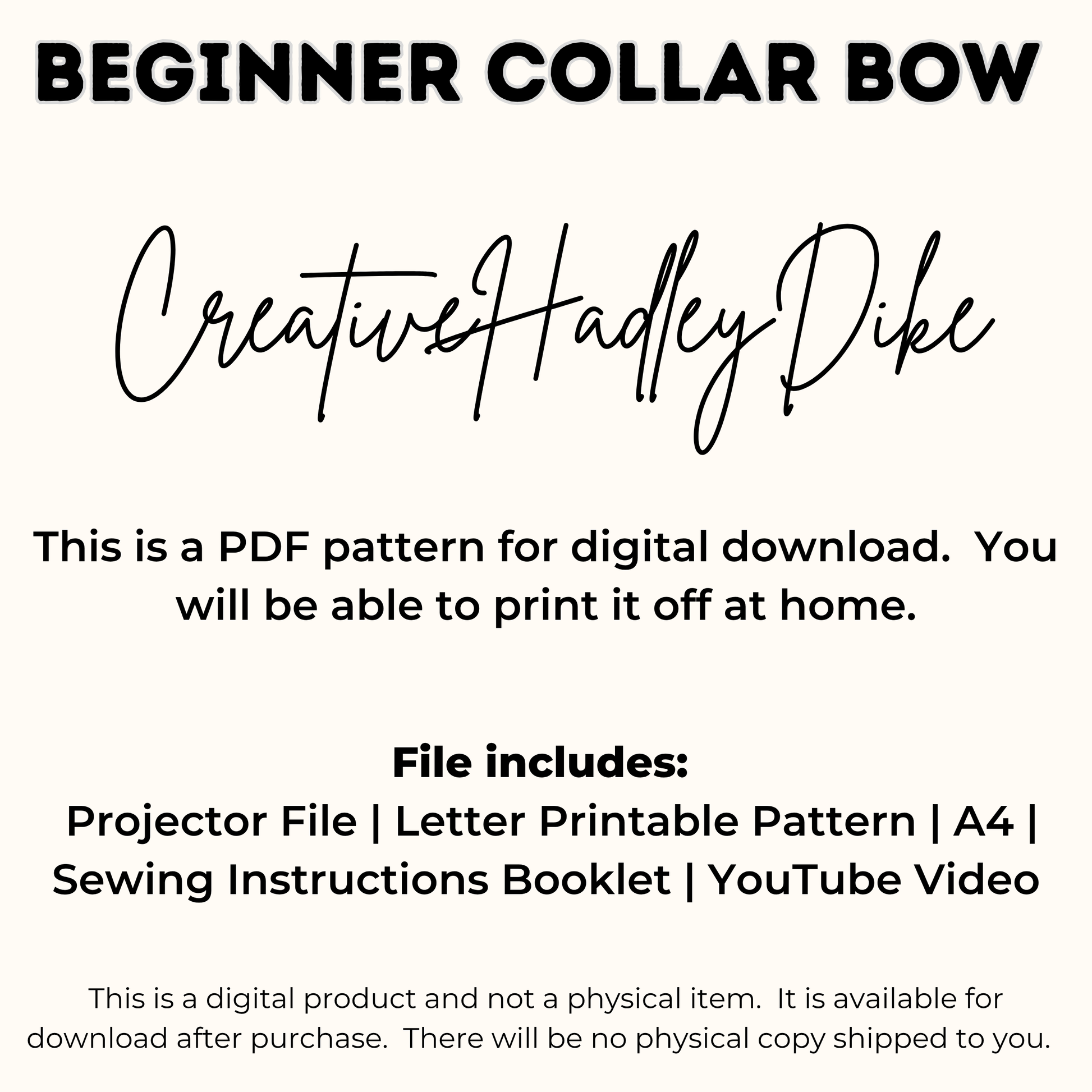 Pet Collar Bow Sewing Pattern, Easy Beginner PDF and Projector Files with 8 Sizes