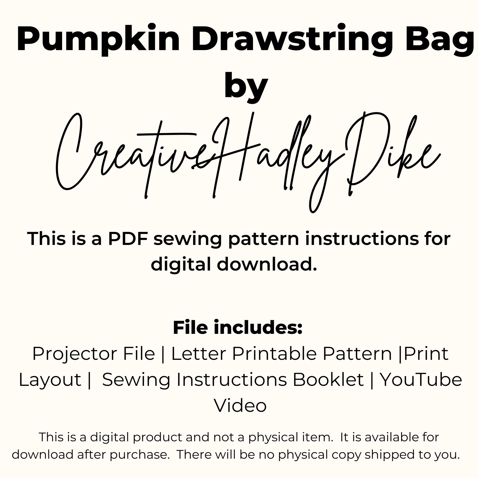 Pumpkin Bag Sewing Pattern with 3 Sizes, Printable PDF and Projector File, and Step-bystep video tutorial