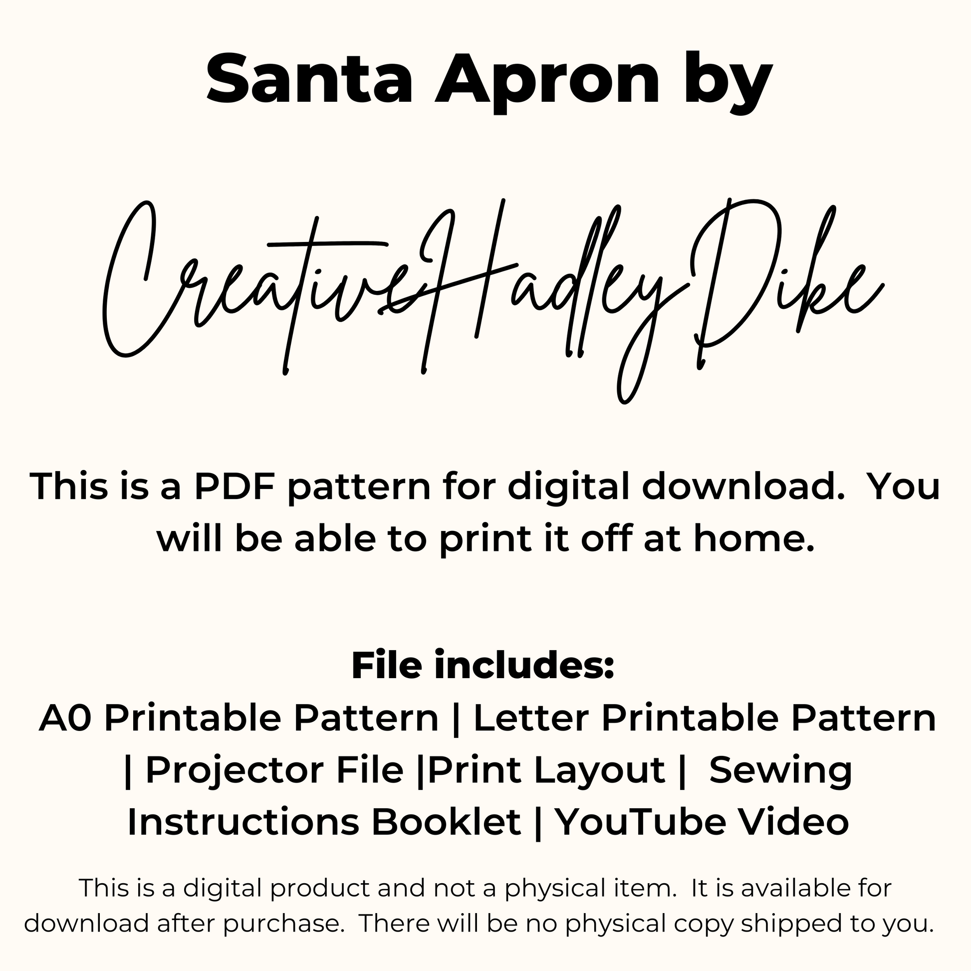 Get festive and ready to bake up some holiday cheer with this Santa Claus Apron Sewing Pattern! Perfect for holiday baking, decorating, and adding a little Santa magic to your kitchen, this apron pattern is designed to be both stylish and functional. This easy-to-follow packet includes everything you need to create your very own Santa-inspired apron, whether you’re using a home printer, projector, or plotter.