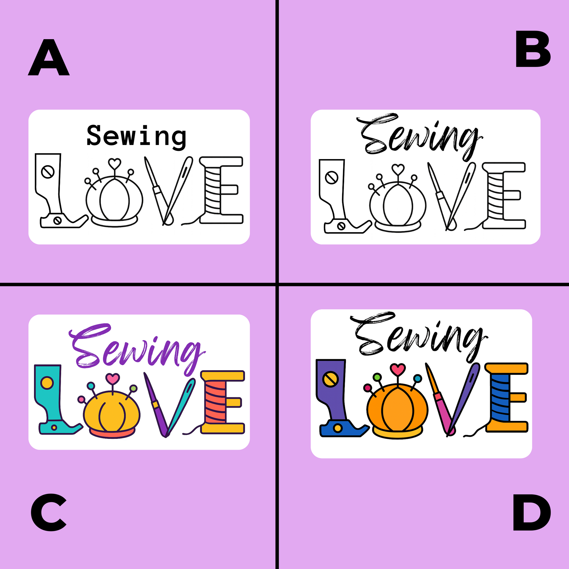 Sewing Love Sticker – Black & White or Color – Glossy Vinyl sticker