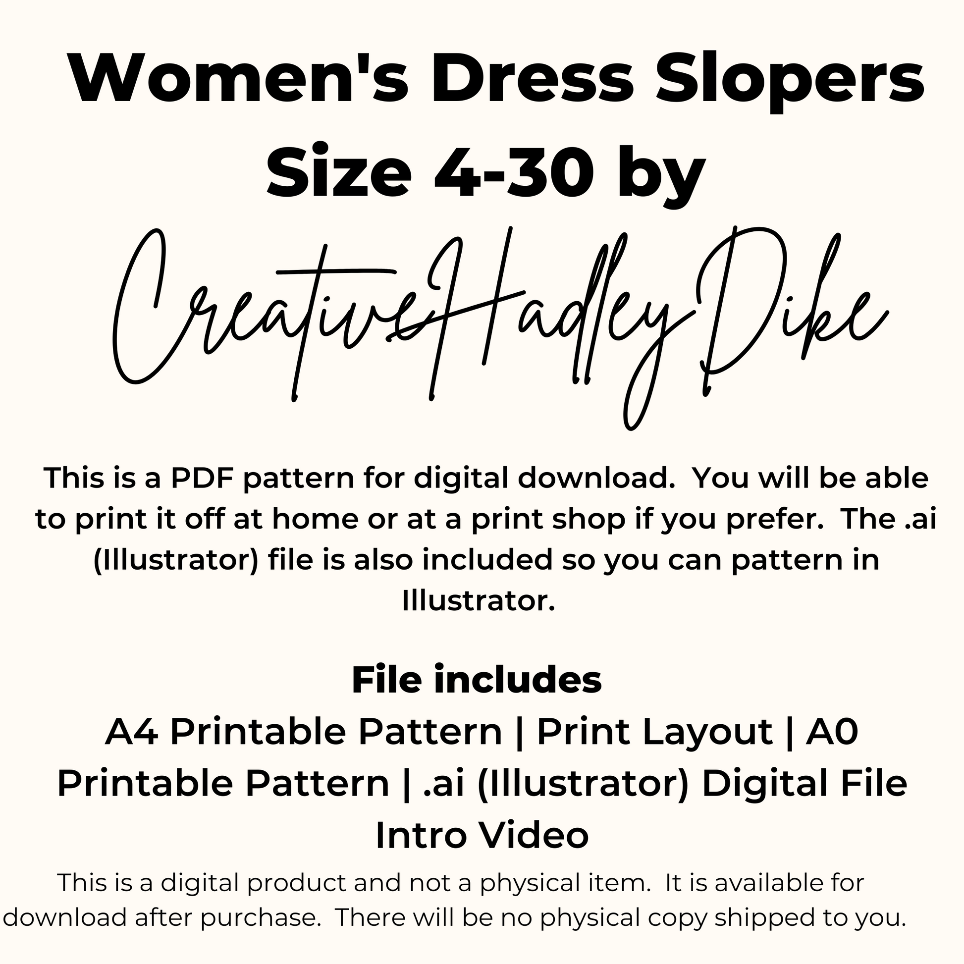 Women's Dress Block, Women's Sloper Set, PDf Women's Dress Pattern, Basic Pattern Set, Pattern Sizes 4-30, Slopers Make Your Own Patterns
