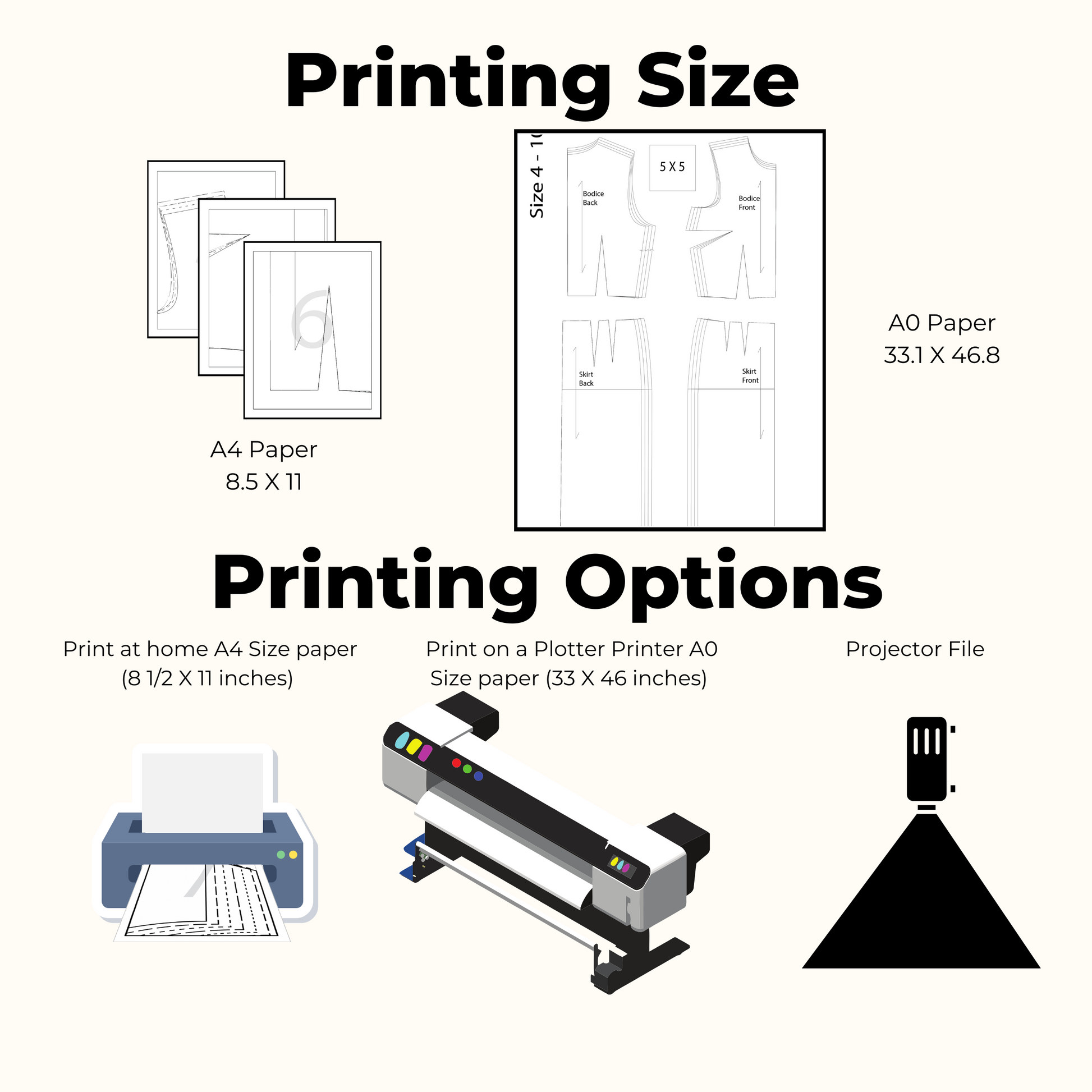 Sewing instructions are NOT included in the pattern. One must be an experienced sewer and have basic knowledge of pattern making. Pattern may require minor alteration to fit per body size.